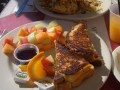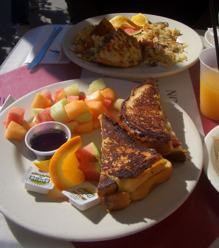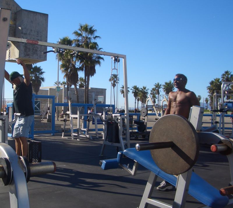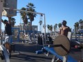 Diesmal hab ich mich gegen ein Omelette entschieden und für getoastete belgische Waffeln mit Mascarpone und Erdbeeren – ein Gedicht! Danach haben wir einen langen Spaziergang am Strand gemacht und sind dabei am Muscle Beach vorbei gekommen. Hier wurde “our Governor” Arnie Schwarzenegger und einige andere Mr. Universe entdeckt. Wir haben nur ältere Herren gesehen, die bereits einige Jahre zuviel auf ihre Entdeckung warten.
