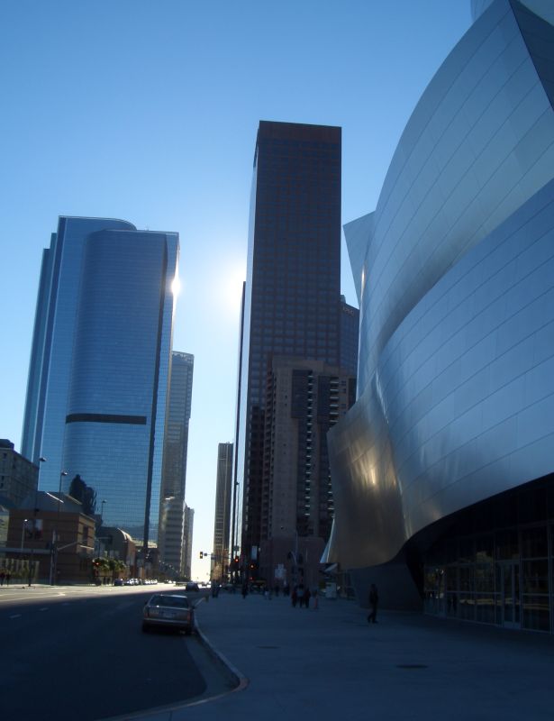 Mit leichtem Sonnenbrand im Gesicht sind wir dann nachmittags nach Downtown L.A. gefahren. Allerdings gab es da so gut wie nix zu sehen. Trotz intensiver Recherche im Reiseführer haben wir gerade mal einen lausigen Park entdeckt in dem allerdings eine mexikanische Kirmes stattfand, und ein junger Mann dem versammelten Publikum lauthals traurige Lieder entgegen plärrte. Naja, aber ein gegrilltes Würstchen hat schon wieder geschmeckt.