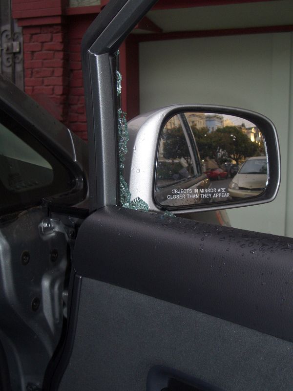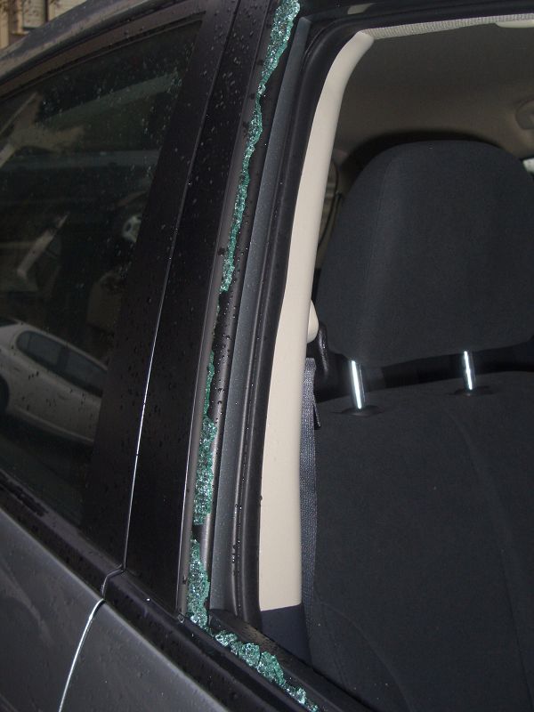Thomas geht zur Beifahrerseite und bleibt geschockt stehen. Ich denke: ‘Nein, von der Seite kann uns niemand ins Auto gefahren sein, da ist doch ein Fußweg!’. Als ich um das Auto herumgehe, sehe ich auch schon Scherben und das zertrümmerte Beifahrerfenster. ‘Ok, dann ist das Navigationsgerät halt weg’, denke ich, bis mir einfällt, dass meine Tasche auf dem Rücksitz lag. Ja, lag. Der Typ muss sich halb ins Auto geworfen haben, um da ran zu kommen. Schlagartig wird mir klar, was alles in der Tasche war: Schlüssel, Portemonnaie (natürlich mit Perso, Führerschein und EC-Karte), und Thomas Weihnachtsgeschenk: mein Handy. Eine einzige Frage taucht auf: Warum?