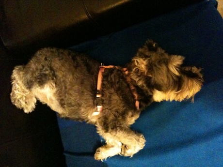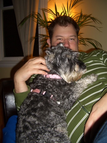 Am vergangenen Wochenende fand nicht nur meine zweite residency (stoehn) statt, sondern wir hatten auch Besuch von Wiley und Priscilla. Zwei etwa 10 Jahre alte Schnauzer, die Iris und Dustin vor sechs Wochen adoptiert haben, da ihr Besitzer verstorben ist. Am Wochenende mussten die beiden (Iris und Dustin) nach San Diego und wir hatten das Vergnuegen auf die Hunde aufpassen zu duerfen. Wiley und Priscilla sind sehr pflegeleicht und fuehlen sich bei uns, glaube ich, sehr wohl. Eigentlich wollen sie den ganzen Tag nur gekrault werden: