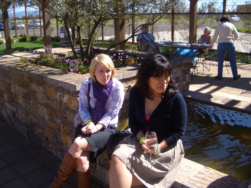 Kathrin hat zwar eigentlich gerade nur die Semester-Zwischenprüfung nächstes Wochenende im Kopf, aber mit viel Zureden und der Aussicht auf ein paar schöne Tröpfchen lies sie für einige Stunden von ihren Büchern ab. Wie schon beim letzten Mal konnte jeder von meiner “Wein-Alergie” profitieren, da mich dies natürlich als Fahrer qualifizierte. Und so machten wir – also Iris, Giulissa, Dustin, Kathrin, und ich – uns mit leichter Verspätung am Samstag um 11:00 auf den Weg in’s Sonoma Valley.
