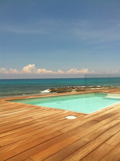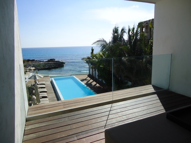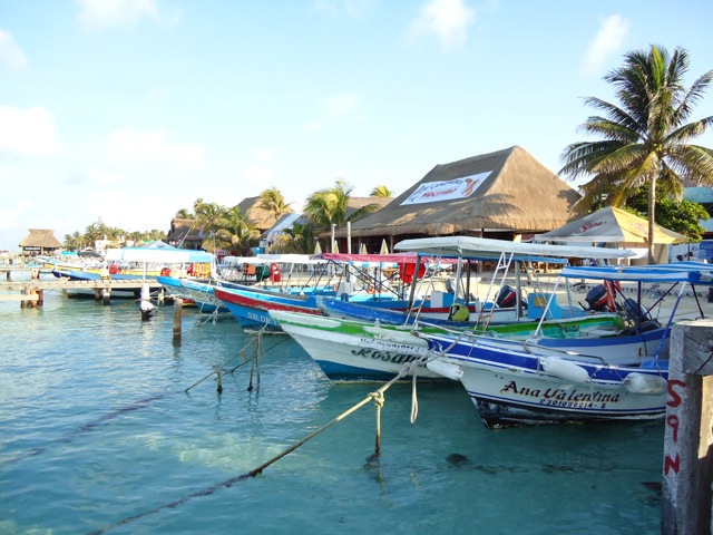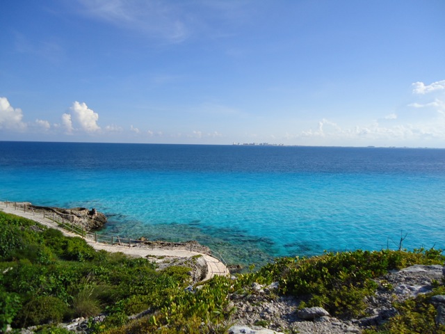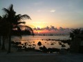 Aus dem grossen Trubel wollten wir uns aber gerne raushalten und haben uns deshalb für die kleine Insel Isla Mujeres, etwa 20 Bootsminuten vom Festland, entschieden. Die Insel ist ungefähr 8 Kilometer lang und an manchen Stellen nur ein paar Hundert Meter breit. Es gibt auch hier wunderschöne Straende und Tauch- und Schnorchelgebiete rund herum. Das zieht zwar viele Touristen an, ist aber nicht mit den riesigen Resorts auf dem Festland zu vergleichen. Wir hatten uns ein sehr schönes, kleines Hotel im Norden der Insel ausgesucht. Dort haben wir auch die meiste Zeit verbracht: entweder lesend auf dem Balkon oder schwimmend im Pool! Nicht weit von unserem Hotel liegt der schönste Strand der Insel, Playa del Norte! Dort konnte man abends den Sonnenuntergang bewundern…
