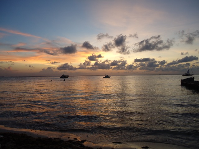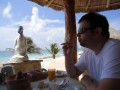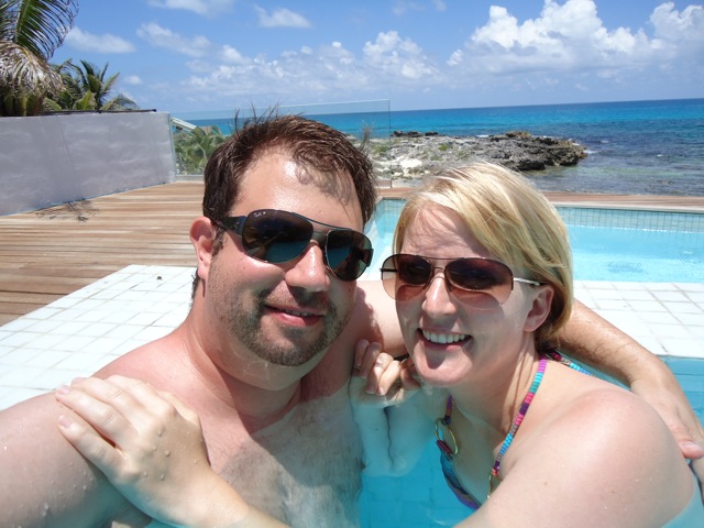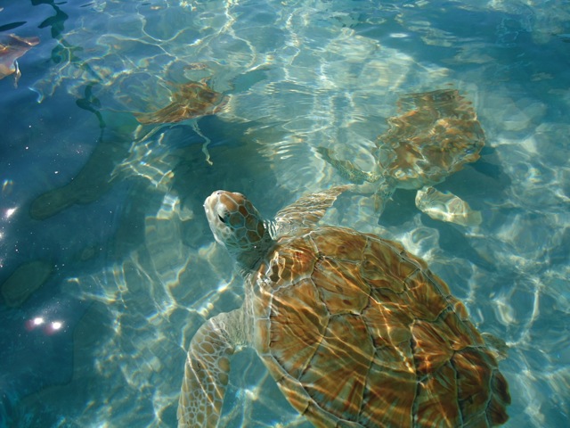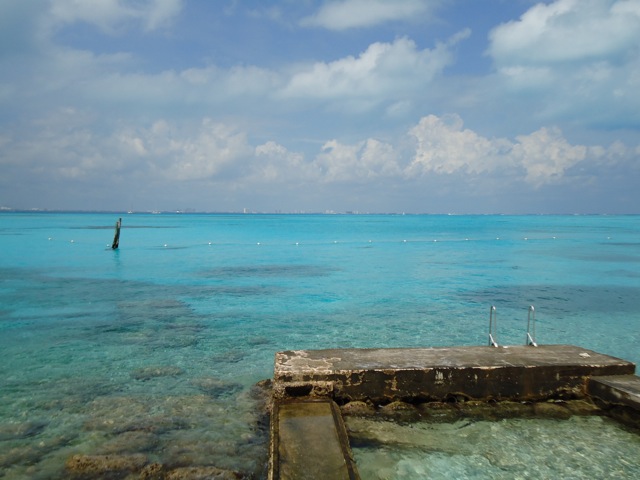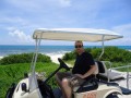 Da die Insel so klein ist, braucht man sich gar kein Auto zu leihen, sondern kann ganz bequem mit einem Golfcart herumfahren. Das haben wir auch gemacht und an einem Tag die gesamte Insel entdeckt. Am Abend sind wir bei Plaza Lancheros noch mal ins Meer gehüpft und als wir zu unserem Platz zurück kamen, merkten wir, dass wir mitten in einer Hochzeitszeremonie gelandet waren. Neben unseren Handtüchern war ein Pavillion aufgebaut und 5 Minuten später tauchte ein nervöser Bräutigam auf und dann auch schon seine Braut. Allerdings hat das Paar nicht zum ersten Mal geheiratet, sondern sein Eheversprechen nach 40 Jahren (!) erneuert. Ganz geruehrt haben wir uns das Ehegelübde der beiden angehört. Sehr romantisch! Allerdings waren wir beide noch nie so unpassend gekleidet fuer eine Hochzeit, naja, wir waren ja auch eigentlich gar nicht eingeladen…