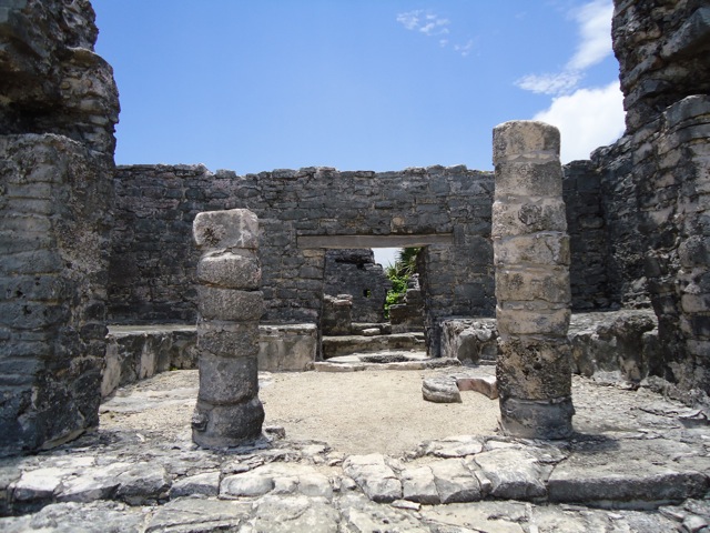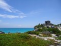 Da uns die Hitze und vor allem die hohe Luftfeutigkeit zu schaffen gemacht hat, haben wir es nach dem Inselausflug wieder ganz ruhig (am Pool) angehen lassen. Am Mittwoch wollten wir dann aber doch noch mal von der Insel runter und etwas Kultur erleben. Deshalb sind wir aufs Festland, haben uns ein Auto gemietet und sind von Cancun nach Tulum gefahren. Dort gibt es eine sehr schöne Maya Tempelanlage. Sie gehört zwar nicht zu den grössten und beeindruckendsten, aber sie ist wohl die mit dem schönsten Blick. Sie wurde direkt am Meer gebaut und bietet eine fantastische Aussicht! Auf der Fahrt dorthin haben wir uns natürlich in die Geschichte der Mayas und Tulums eingelesen, vor Ort war es dann allerdings wieder so heiss, dass wir uns auf die Bademöglichkeiten konzentriert haben!