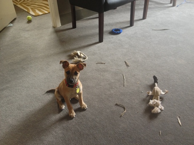 Mittlerweile ist die Wunde aber verheilt und wir trauen uns auf die Strasse mit ihm. Welpen dürfen eigentlich nicht auf die Strasse bis sie 4 Monate alt sind und alle Impfungen erhalten haben. Jeden Montag gehen wir mit ihm zur Puppy Class. Wir lernen dort wie wir Jake am besten trainieren (er kann schon “sit”), und er lernt andere Hunde kennen. Soviel ist schon mal klar: Jake ist etwas “bossy” und hat gerne die Oberhand.