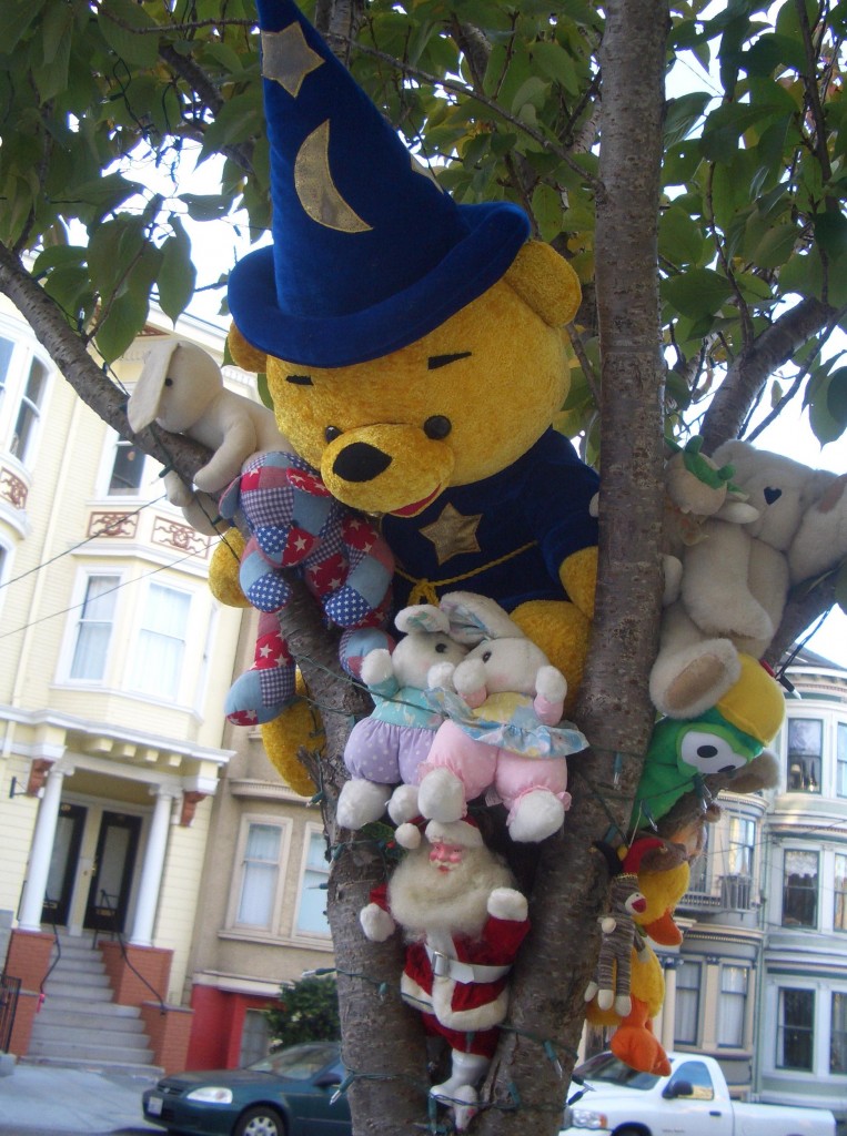 Aktuelles Beispiel ist die Aufmachung des Zuges im Golden Gate Park, der alljährlich unter dem Weihnachtsbaum seinen Platz findet. Dieses Jahr ist er über und über mit Obama-Insignien verziert: